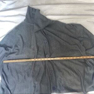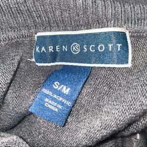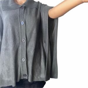 Karen Scott gray button up cape shawl SZ SM. Collared pull over medium weight sweater shawl/cape/poncho. Back to school, Winter, fall, family pictures, pumpkin patch, harvest, spice, Autumn Holiday, Christmas. Comfortable, easy, restful, throw on, snuggly, Soft, cozy, casual.