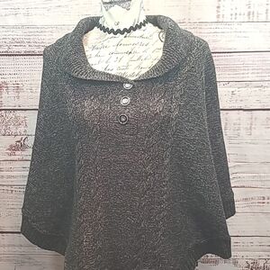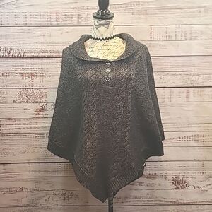 Black and gray knit poncho with v neck. Pre-owned in like new condition.