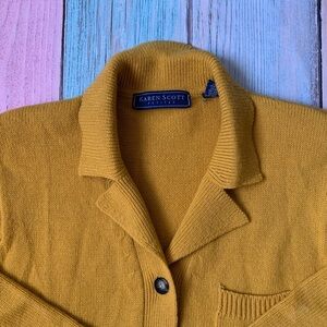 Karen Scott mustard yellow button up cardigan size petite medium. In great pre owned condition. No stains or rips. Wool/acrylic blend.