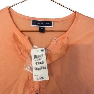 Karen Scott peach cream short sleeved ruffle front t shirt size petite small