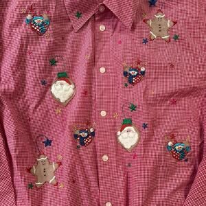 red and white plaid, holiday shirt, festive button-up, Christmas top, casual winter wear, seasonals, cozy vibe, traditional pattern, holiday apparel