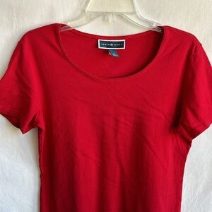 Karen Scott deep red short sleeve cotton tee, size M. Good preowned condition. Round neckline. 100% cotton.