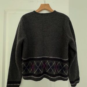 Karen Scott vintage pure wool grey long sleeve button cardigan sweater medium