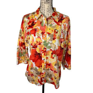 Karen Scott,L,long sleeve collar button front fall floral print pocketed top