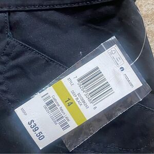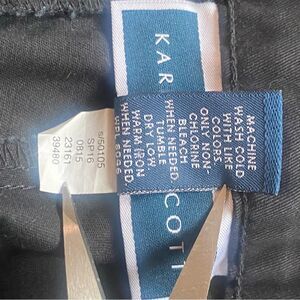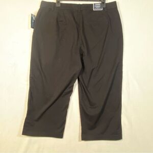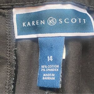 Karen Scott New W/Tags Black Capris Size 14. Excellent new condition. Left legs has small area of residual adhesive from size strips. Otherwise no issues. Front button and zipper closure. Tummy control slimming waist. Buttons at cuffs cotton blend machine wash. Measures approximately waist 36", inseam 20.5", rise 10.5".