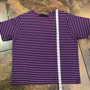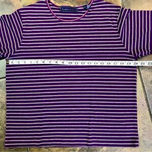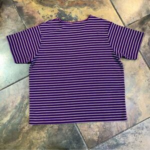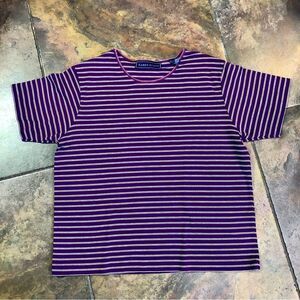 Karen Scott Purple and White Striped Tee Shirt Size Large