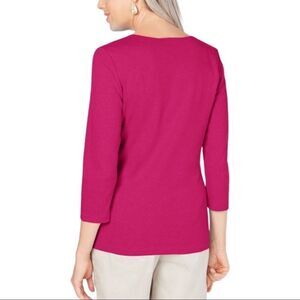 Karen Scott Three Quarter Sleeve Cotton Scoop-Neck Top • NWT
