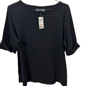 Karen Scott, black 100% cotton, short sleeve blouse.  A515