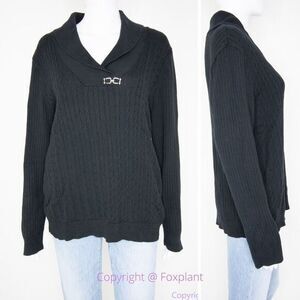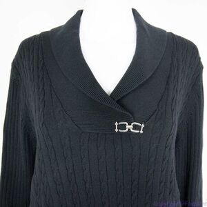 Karen Scott shawl collar black sweater with metal button, women's XL