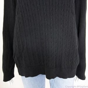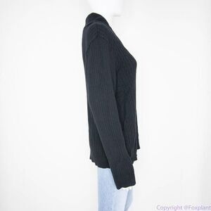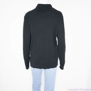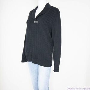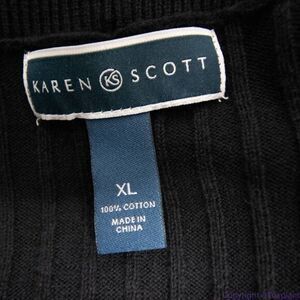 Karen Scott shawl collar black cotton sweater with metal button, women's XL