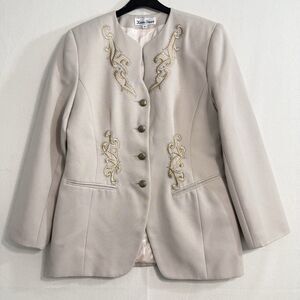Karen Stuart Blazer Jacket Size 12 Cream Embroidered Detail Vintage