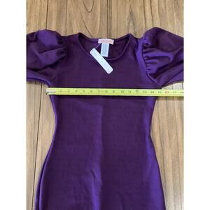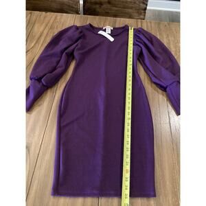 Karen T Design Balloon Long Sleeve Midi mini bodycon fitted Dress Purple S NWT
