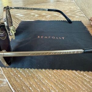 KAREN WALKER Bounty Sunglasses - Black with Gold Frame. 47-22 145 Style number 1701424. With Seafolly Sunglasses case and wipe. Very good pre-loved condition. Original Retail $280.
