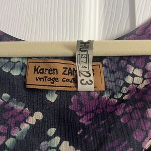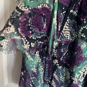 Karen Zambos Purple Pattern Dress - NWOT - Short Sleeve Cocktail Dress - Frayed Style - Size Medium