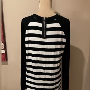 Karen by Karen Kane Black & White Striped Back Zipper Top, size L
