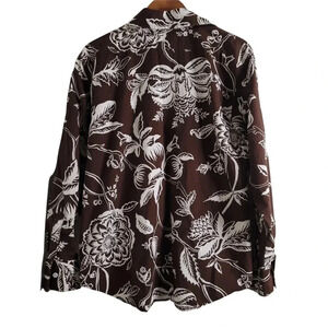Karen kane Lifestyle size XL brown shirt white Floral print buttons up longsleeve women's very beautiful perfect condition pre-owned no stains no hole no flaws.