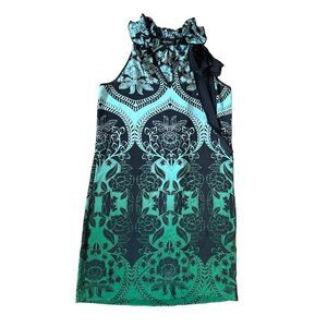 Karen Kane 100% Silk Paisley Patterned Blue & Green Ombre Cocktail Dress
