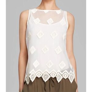 Karen Kane Marrakech Cream Embroidered Mesh Sheer Tank Top size L NWT