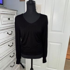 Karen Kane black long sleeve Shirred V-Neck Top- size medium- like new!