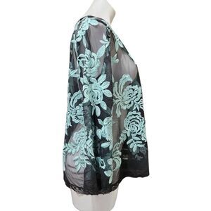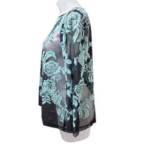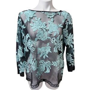 Karen Kane blouse mesh lace embroidered blue rose black XL