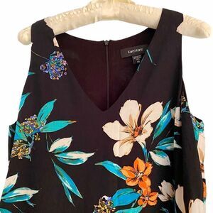 Karen Kane XS Sleeveless Floral Black Midi Dress