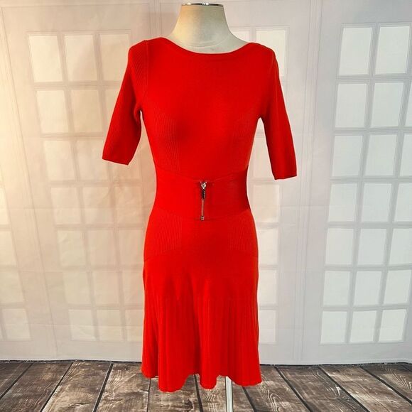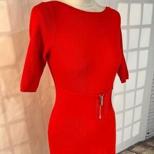 Karen Millen orange wool blend belted short sleeve knit dress size 2
