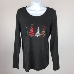 Karen Scott Holiday Christmas Tree Print Top women’s size Small