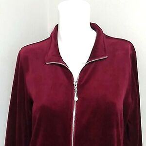 Karen Scott Sport Bergandy Velvet Zip Up Jacket. Size Medium NWOT