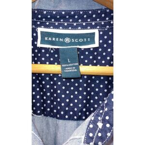 Pre-owned button front shirt by Karen Scott. Color is denim, long sleeves collar front breast pockets.