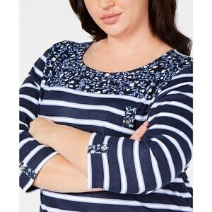 Karen Scott NEW Plus-Size Blue/White Stripe Top 2X