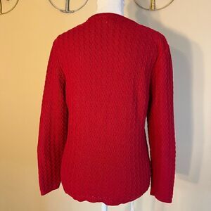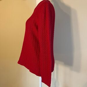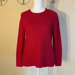 100% Cotton red knit pullover from Karen Scott Petites. Crew neckline, banded hem and sleeves.