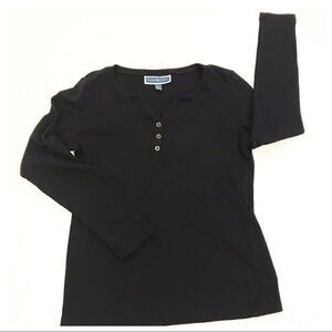 Cozy casual Karen Scott Long sleeve cotton top. Slight V’d front with tan and silver rimmed buttons. Like new