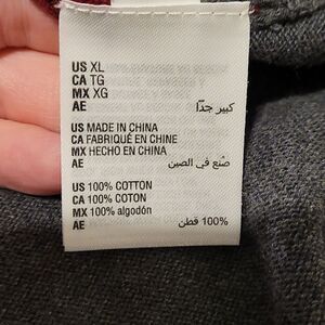 Beautiful sweater. Made with all cotton materials. Very well made. Very soft. Tag says size XL.