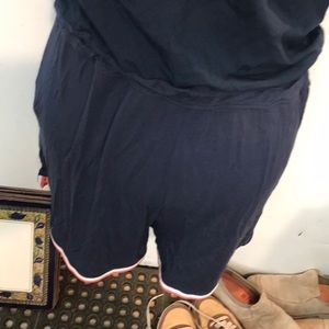 Tennis Shorts Romper with Pockets in Breathable Wickable Fabric Perforated on Back With Red and White Trim Button Neck Red Drawstring Waist