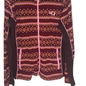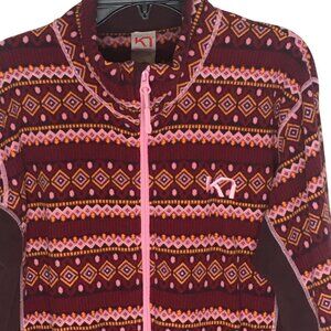 Kari Traa Jacket Womens XL Burgundy Pink Fleece Full Zip Nordic Fair Isle Ski
