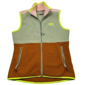 Kari Traa Women's Neon Colorblock Fleece Sherpa Vest Size Small