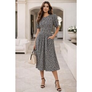 90s Karin Stevens Shift Dress says Size 6 but I wear size 8-10 and it fits me. Lots of stretch.
