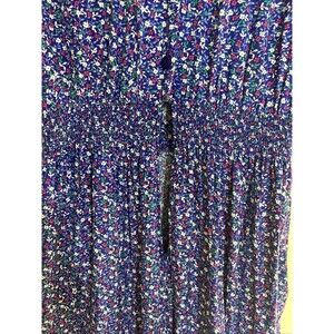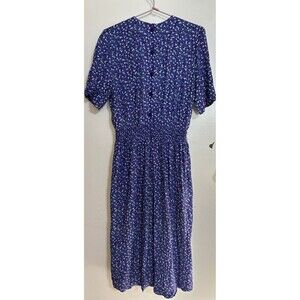 This beautiful maxi dress by Karin Stevens is a must-have for any vintage clothing lover. The dress features a stunning blue floral design, short sleeves, and a comfortable rayon material. The dress is perfect for any occasion and can be worn for a night out or a special event.