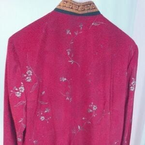 Karin Stevens Red Gold Floral Flower Medley Jacket Size 14 Front Button Up