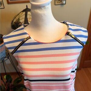 Karin Steven’s Shift Women's Pink White Blue Sleeveless Summer Dress Size 12