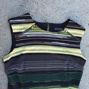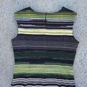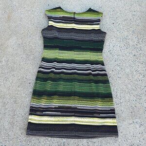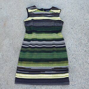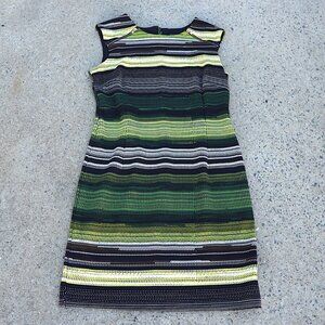 Karin Stevens Size 14 Green Black Striped Sleeveless Sheath Dress