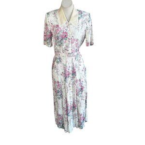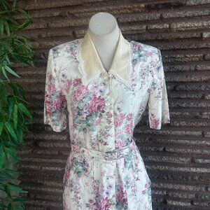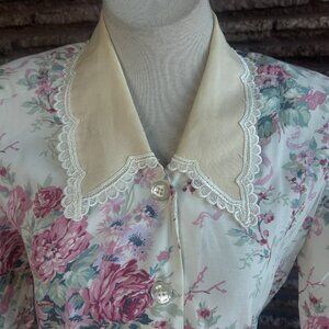 Karin Stevens Vintage 80s Rose Cottage Floral Lace Collar Shirtwaist Dress