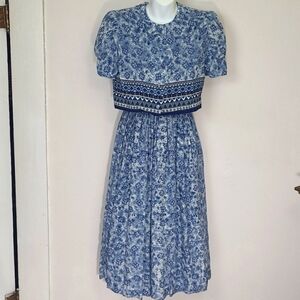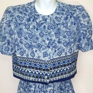 Karin Stevens Vintage Blue White Floral Sundress Cropped Jacket Cottagecore Sz 6