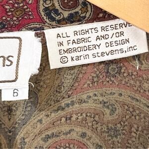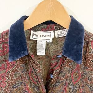 Karin Stevens Vintage Midi Long Sleeve Dress Front Button Closure Velvet Collar