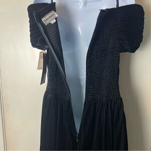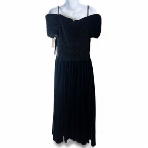 Karin Stevens Vintage Off Shoulder Velvet Maxi Bardot Dress Black NWT Sz. 10