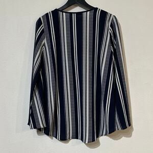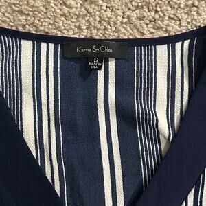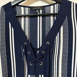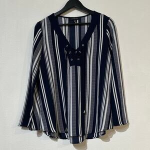 Karina & Chloe Coastal Striped Flowy Lace Up Blouse