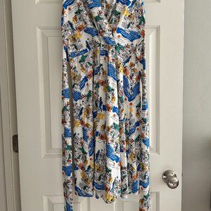 Like New condition - super fun print. Took the tags off and washed, but never ended up wearing this. Hoping to pass it on to a good home! Sleeveless, knee length skirt.