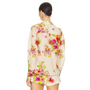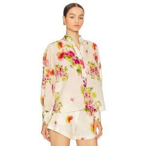 Karina Grimaldi Felicity Print Blouse in White Tuscan Flowers Large New Womens
