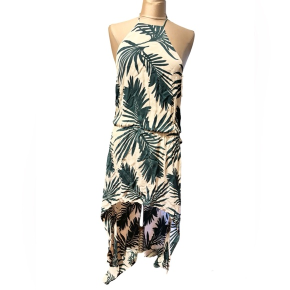 Karina Grimaldi Greeb and White Leaf Halter Dress