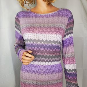 Karina Grimaldi LS Knit Dress Women's Pastel Zig Zag Print Bodycon Jersey Medium
